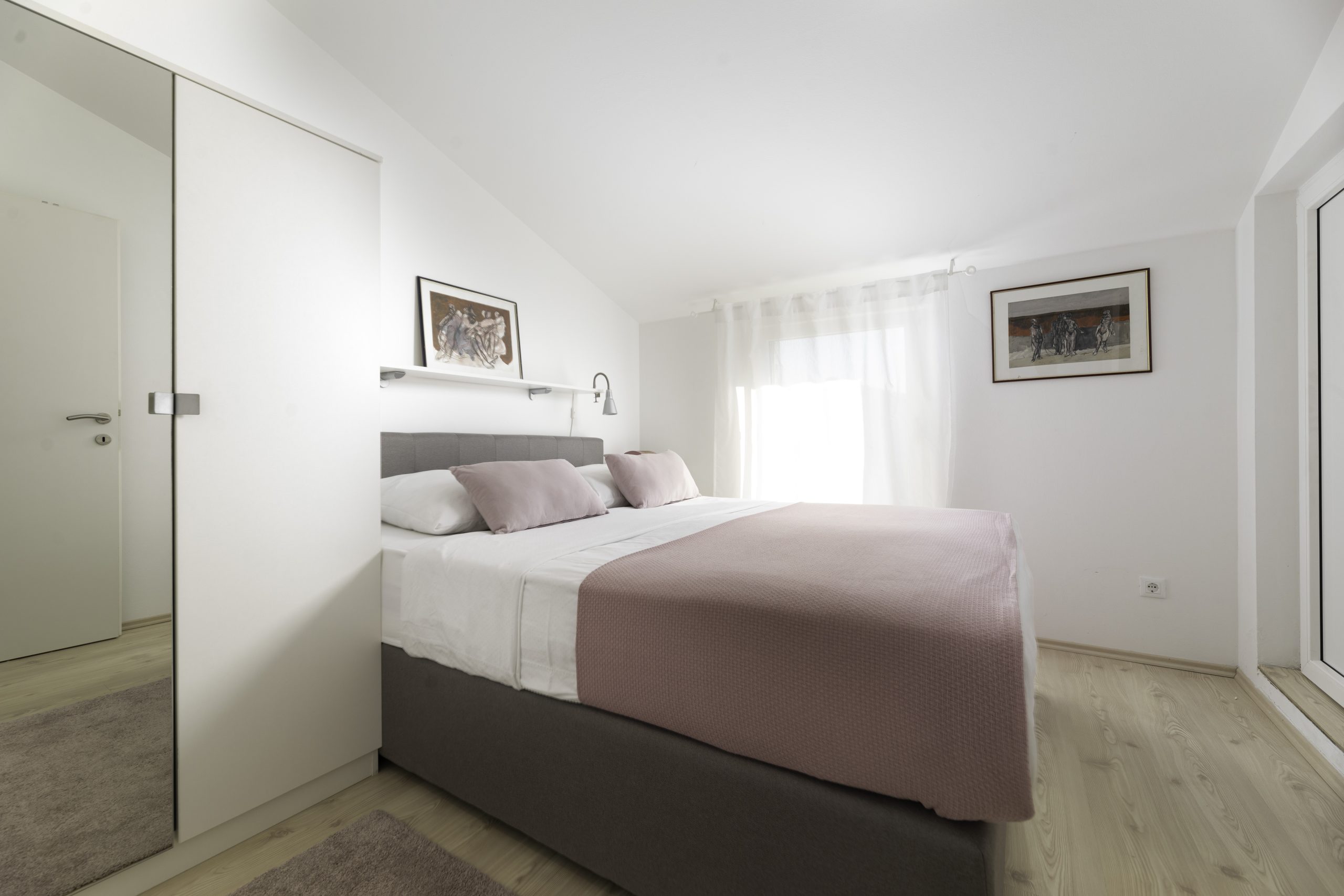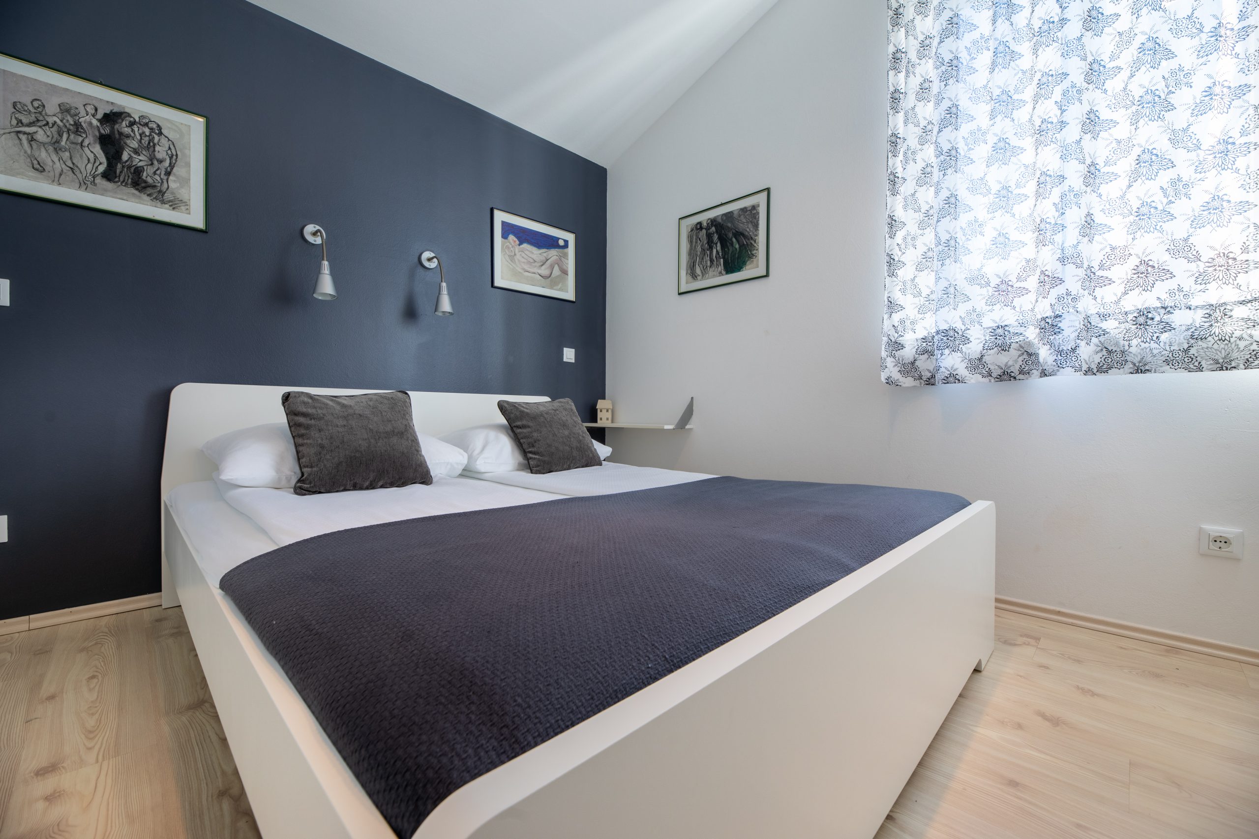 Apartment Arte is situated on the first floor of our family house. There is parking space for your car in our house’s yard, so you won’t need to use your car during your vacation, as all facilities and the city beach are less than 300 meters away.