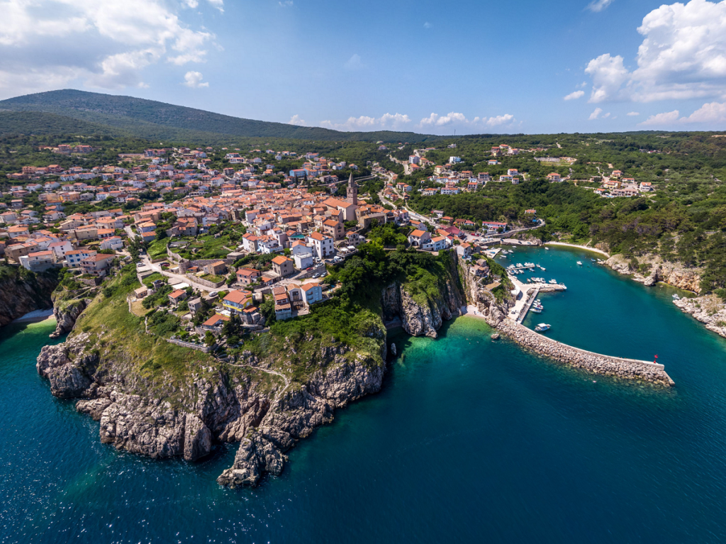 Located on the east coast of Krk Island, Vrbnik sits on a 49-meter-tall cliff protruding from the sea. With around 800 inhabitants, Vrbnik is mainly known for viticulture and tourism. There are no camps, big hotels, or noisy nightlife, making this town the best choice for those who prefer a quiet vacation where everything is within reach.